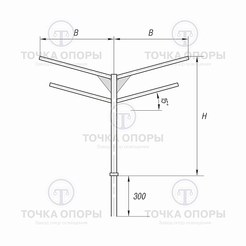 Завод опор освещения «Точка опоры» изготавливает четырехрожковые консольные кронштейны из стального проката. Собственное производство позволяет выполнять изделия надлежащего качества и в кратчайшие сроки.